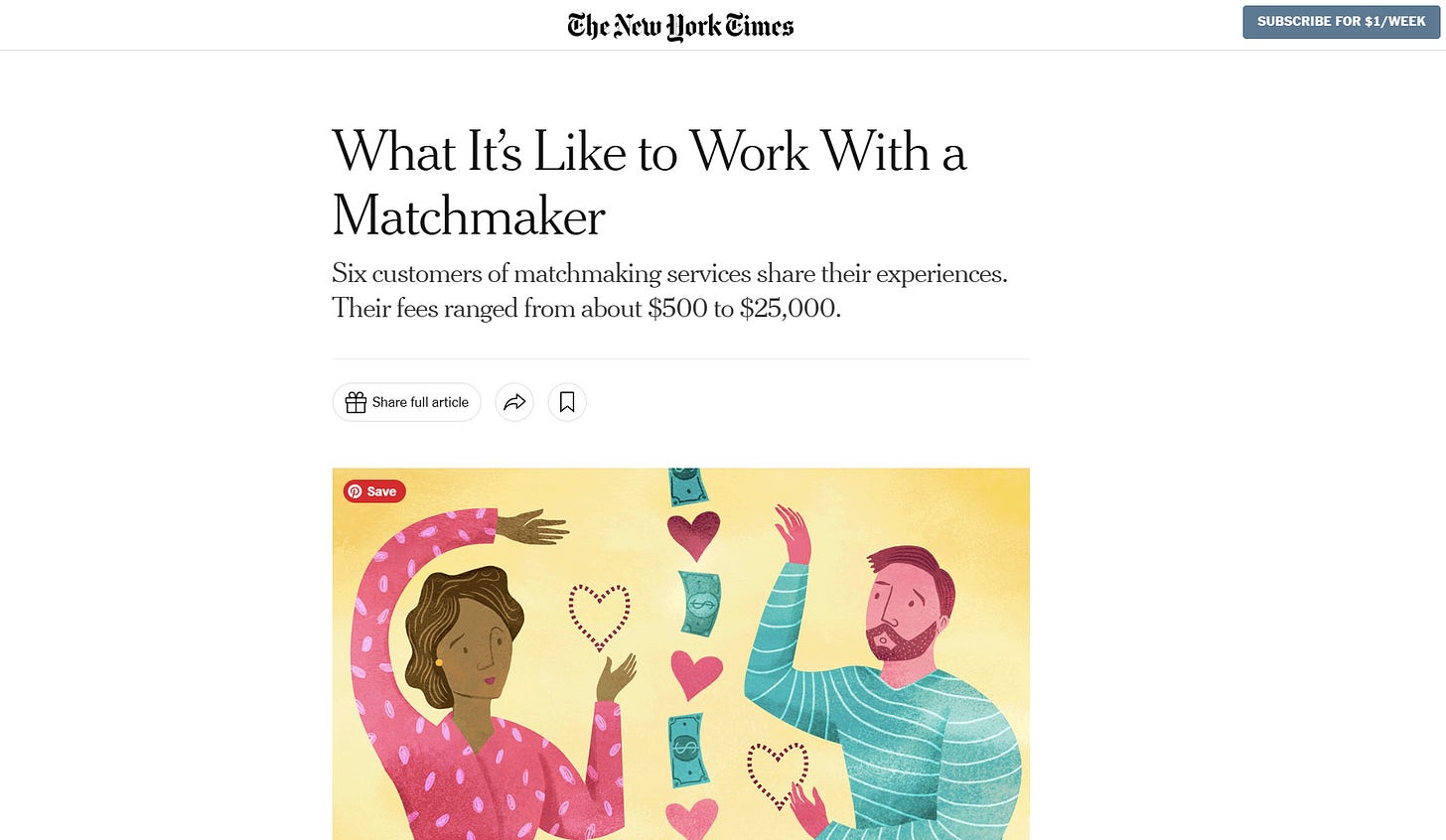 I have come across many folks who inquire about matchmakers in my line of work and it’s gotten more in demand the last few years given things like AI, making up for lost time with COVID, tired of dating apps, lack of friends, busy schedules, frustration with meeting folks offline, lack of hobbies or mindset that dating can be hacked or shortcuts exist for the right price.