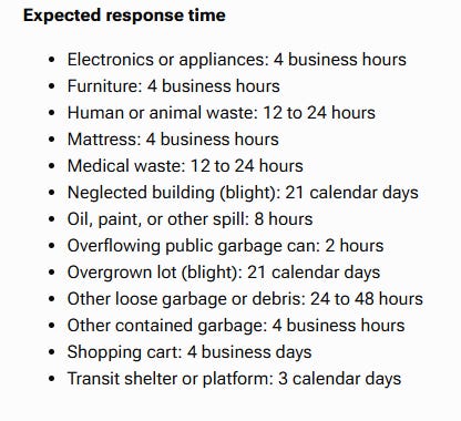 Report trash via 311 app (use an exact address if there is a problematic household, bar or restaurant; contact the restaurant or cafe first to make sure the managers/owners are aware, if not responsive, then report away).
