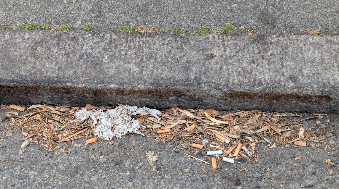 Street cleaning may not come for several days and wind can push it into the streets. Cigarettes can lead to people having less care for neighborhoods and other debris.