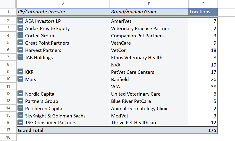 Below are some of the non-branded locations I was able to dig up on my own (cross-referenced with PetVetEquity).